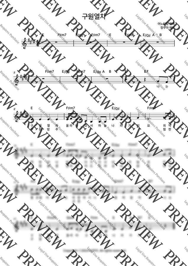 구원열차 어노인팅 편곡버전 단선악보입니다.
