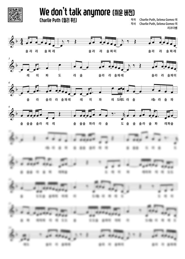 Charlie Puth(찰리 푸스) - We don't talk anymore (계이름, 쉬운버전) by 리코더쌤