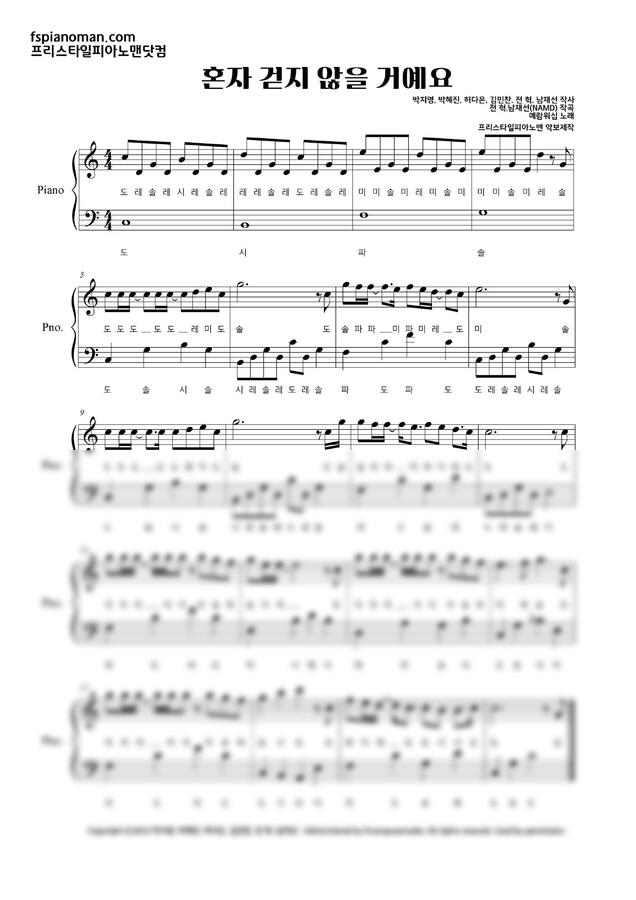 예람워십 - 혼자 걷지 않을 거예요 (계이름 악보 포함) by 프리스타일피아노맨닷컴0