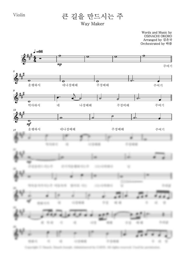 OSINACHI OKORO작사작곡/김은국 편곡 - 큰 길을 만드시는 주 Way Maker (바이올린 반주) by 따름