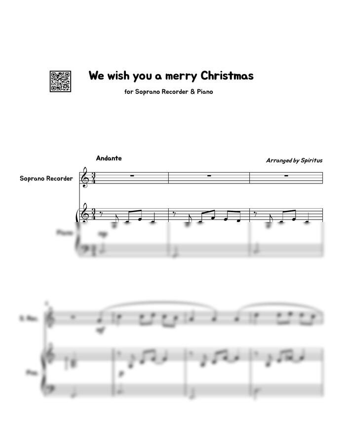 크리스마스를 기다리는 마음으로 캐롤을 준비해봤어요. 조금 평온하고 느릿한 분위기로 편곡한 크리스마스 캐롤 "We wish you a merry Christmas"입니다. 소프라노 리코더와 피아노 반주로 연주하는 이 곡을 한 번 감상해보세요. 곡은 그렇게 어렵지 않아서 가족이나 친구들끼리 리코더와 피아노 반주부를 함께 연습해서 즐겁게 연주할 수 있을 거예요. 분위기를 잘 살려서 멋지게 연주해보세요!