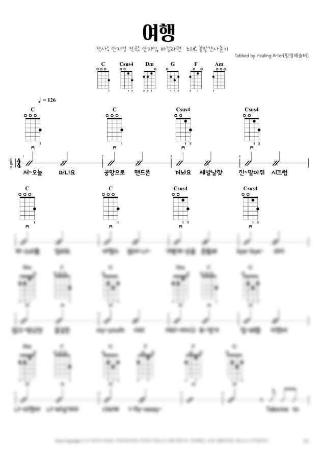악보는 통기타 동영상연주에 나와 있는 1절만 제작 되었으니! 참고하여 구매 해주세요 :)