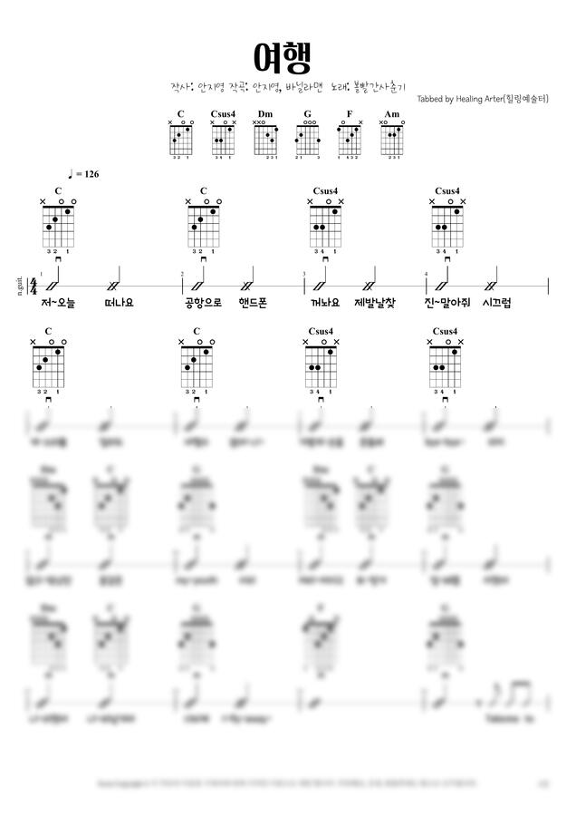 악보는 통기타 동영상연주에 나와 있는 1절만 제작 되었으니! 참고하여 구매 해주세요 :)