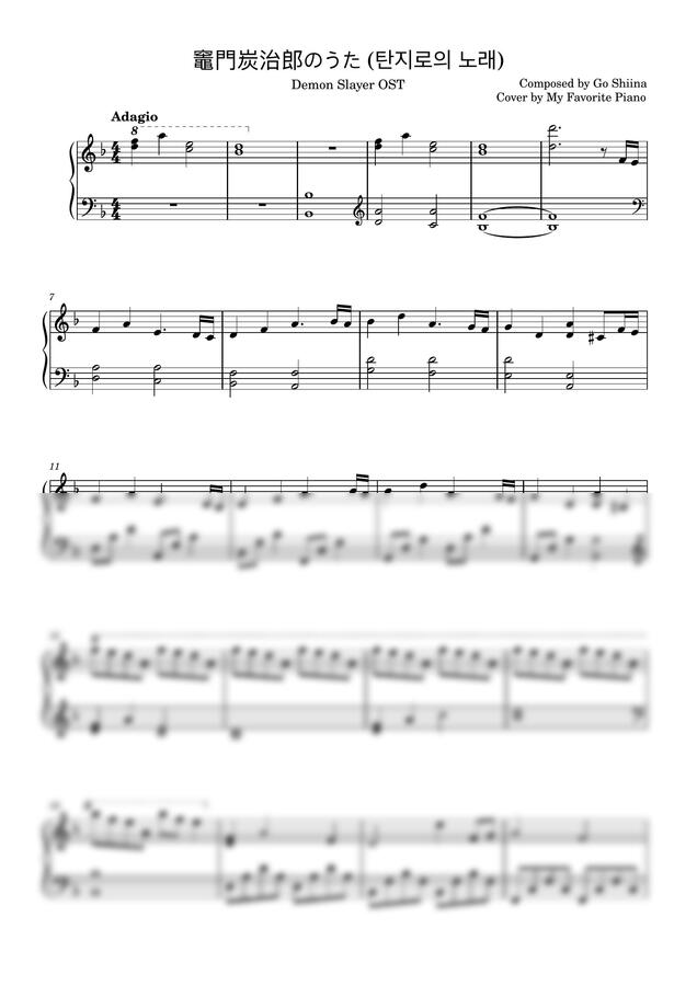 귀멸의 칼날 OST - 竈門炭治郎のうた (탄지로의 노래) (중급 악보) by My Favorite Piano