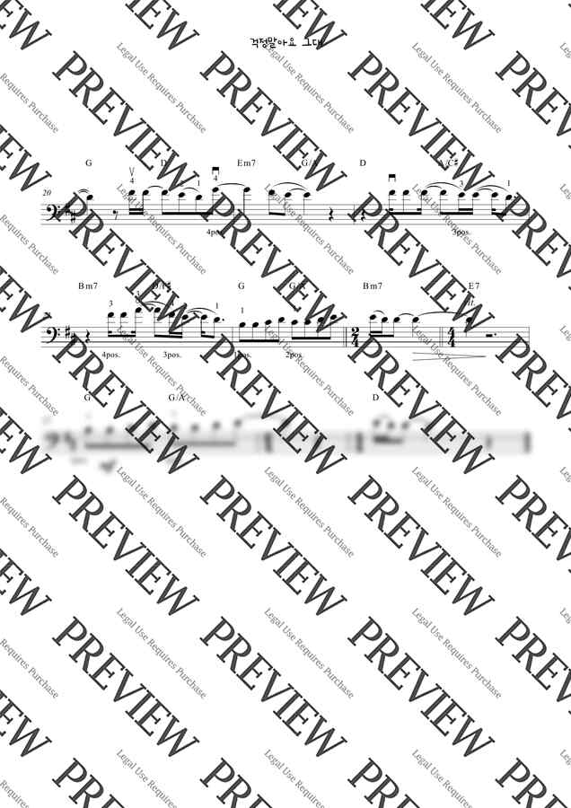 이적, 전인권 - 걱정말아요 그대 (첼로 4포지션 악보 + 손가락 번호, 코드) by 엘로첼로
