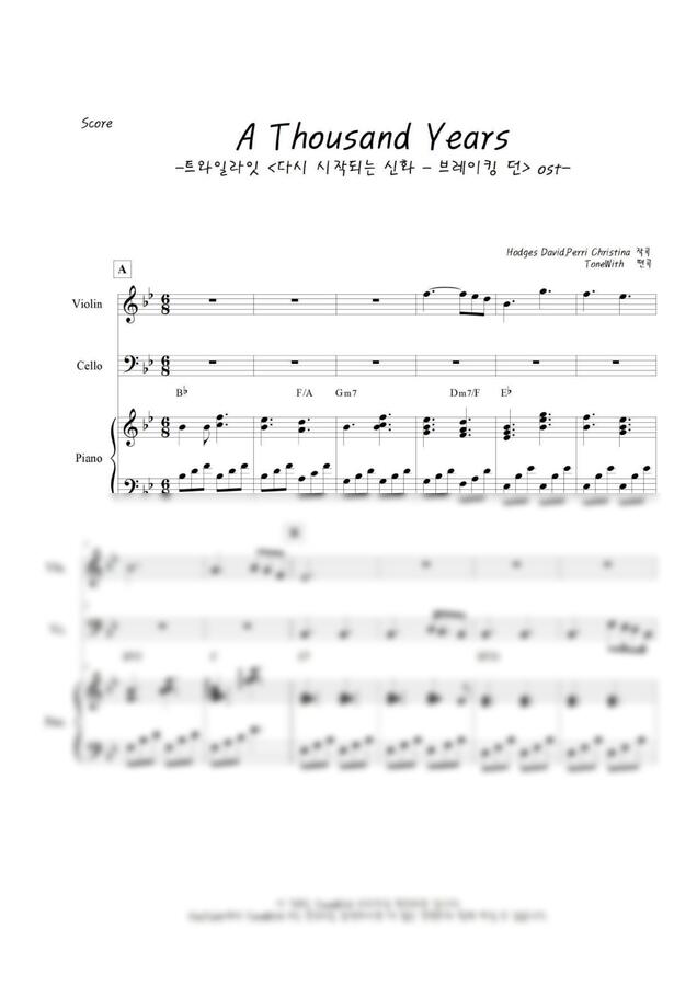 +)이 악보는 해당영상을 첼로 바이올린 피아노로 연주할 수 있도록 구성되어있습니다.