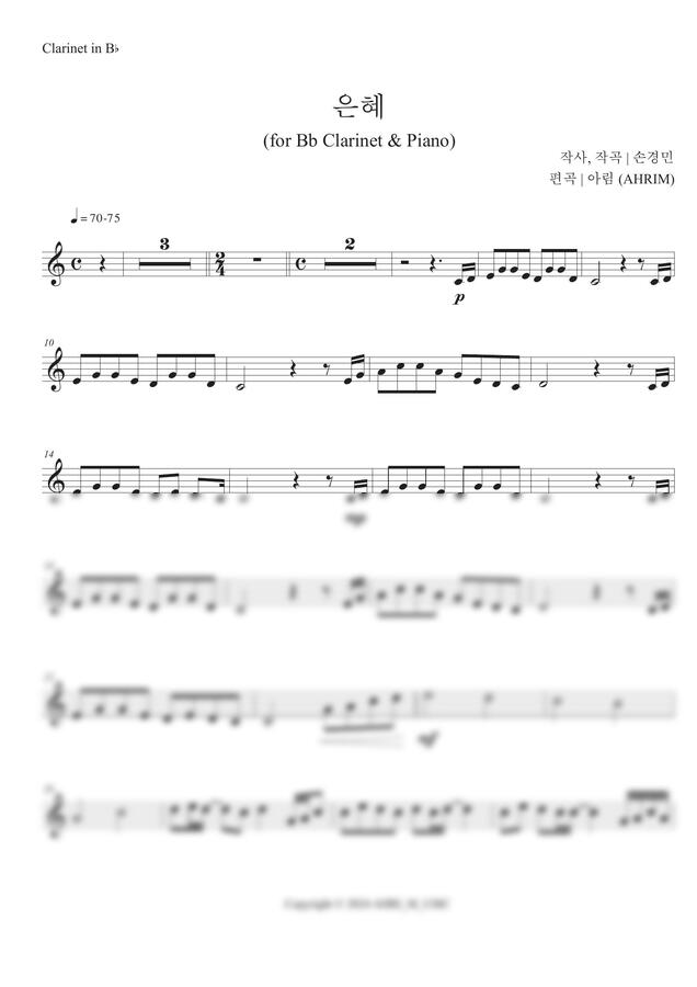 🎈 특주를 위한 클라리넷 단선율 악보입니다.