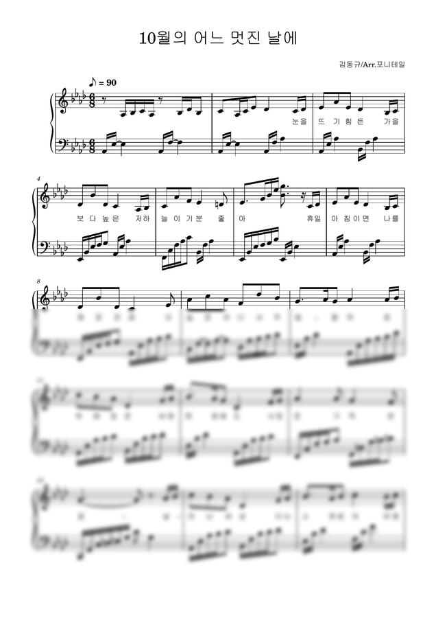 김동규 - 10월의 어느 멋진 날에 (피아노 악보) by 포니테일