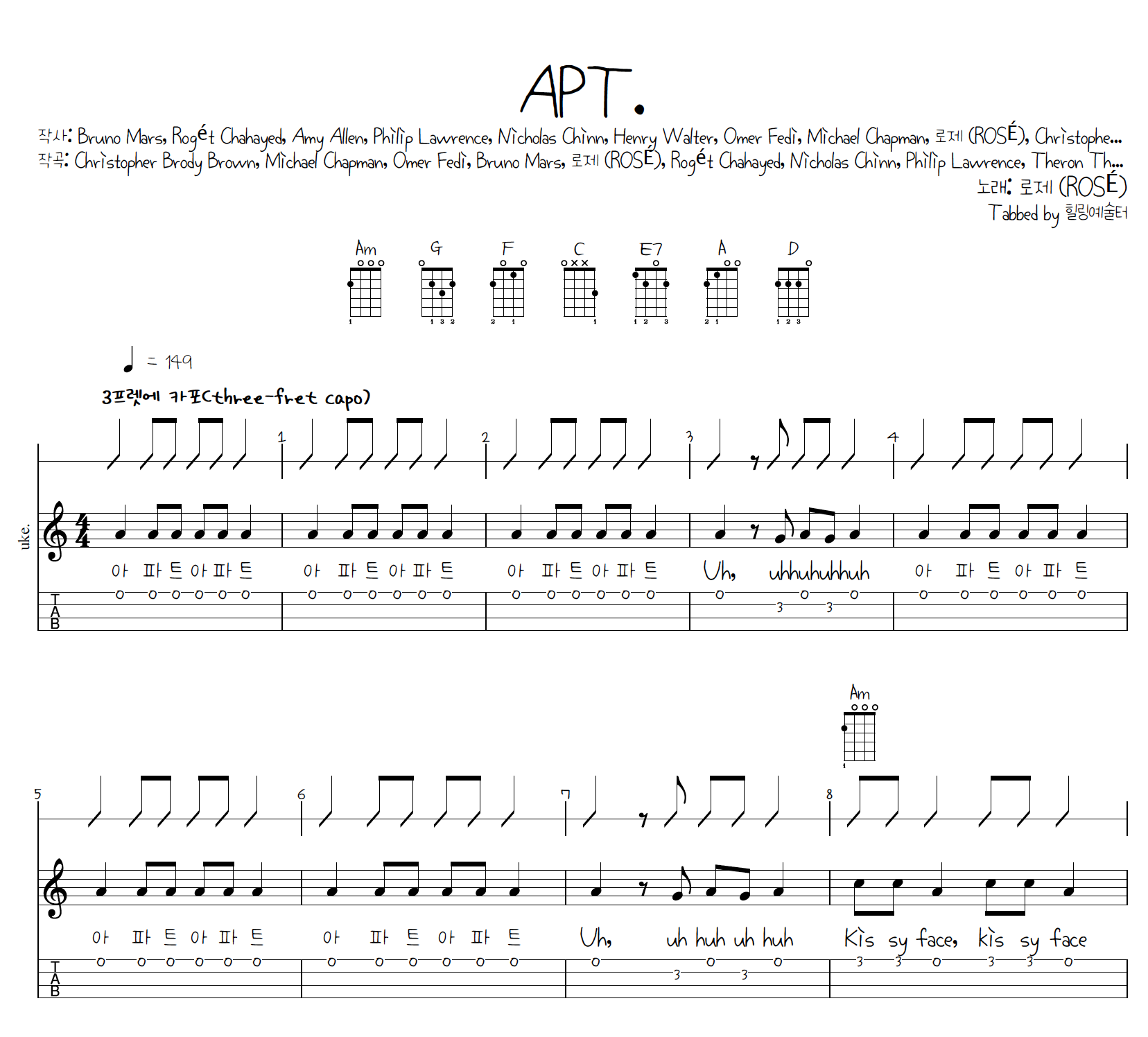 로제 - 아파트 (우쿨렐레코드리듬악보) by 힐링예술터