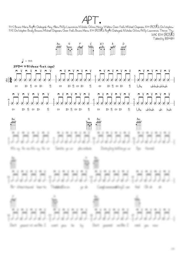 로제 - 아파트 (통기타, 우쿨렐레 앙상블) 악보 모음집로제 - 아파트 (통기타, 우쿨렐레 앙상블) 악보 모음집