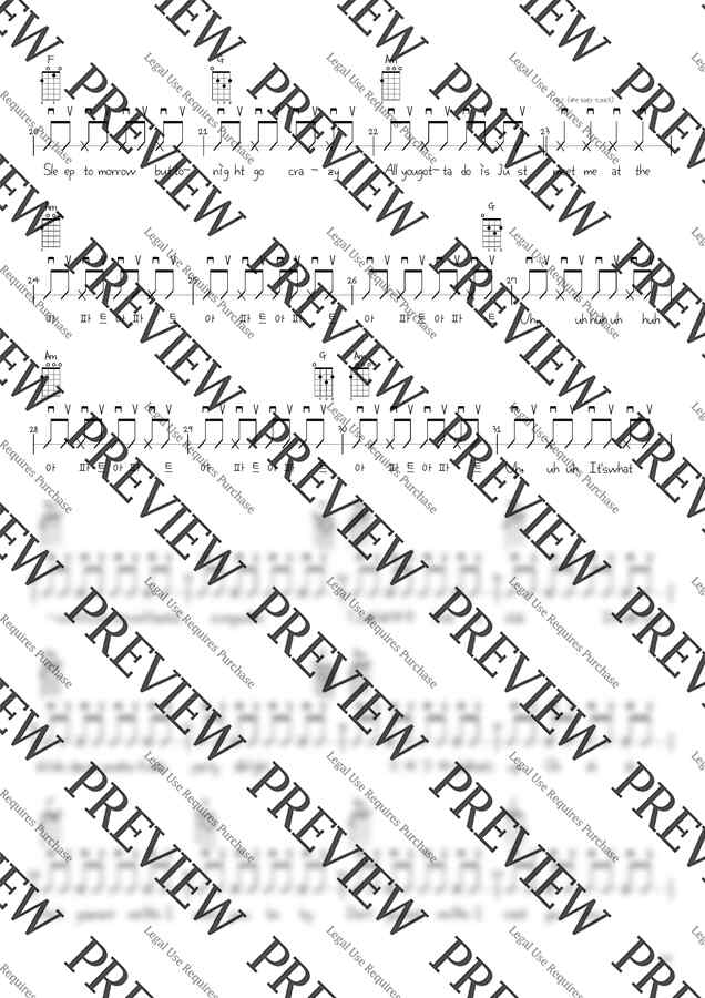 로제 아파트 우쿨렐레 코드리듬악보 입니다! 스트로크 주법을 악보로 만들었습니다!