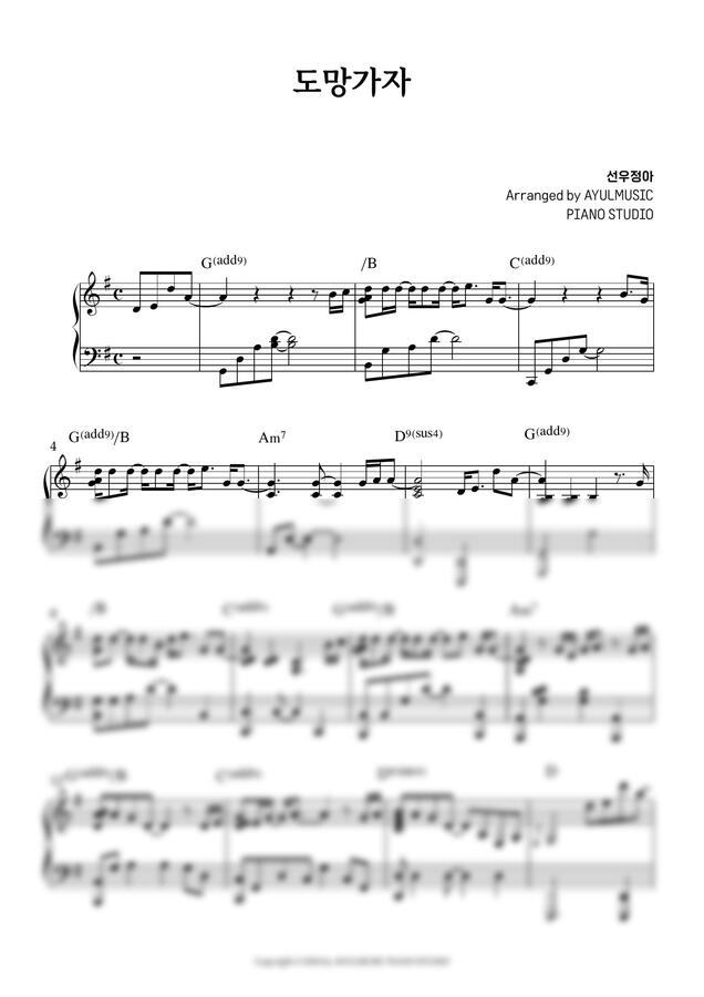 선우정아 - 도망가자 (1절 피아노 악보) by AYULMUSIC PIANO STUDIO