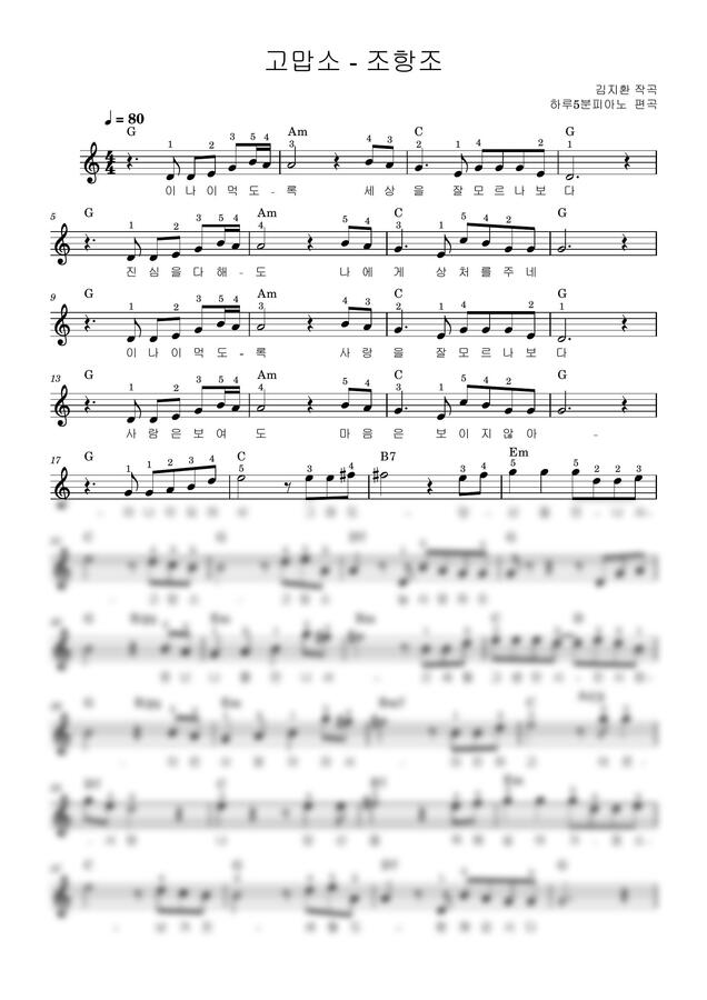 멜로디와 코드가 기입되어 있어요~