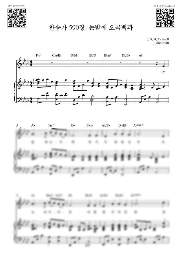 찬송가 590장 - 논밭에 오곡백과_Ab Key (피아노 3단) by Samuel Park 1p 미리보기