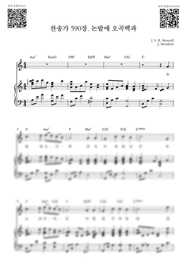 찬송가 590장 - 논밭에 오곡백과_C Key (피아노 3단) by Samuel Park 1p 미리보기