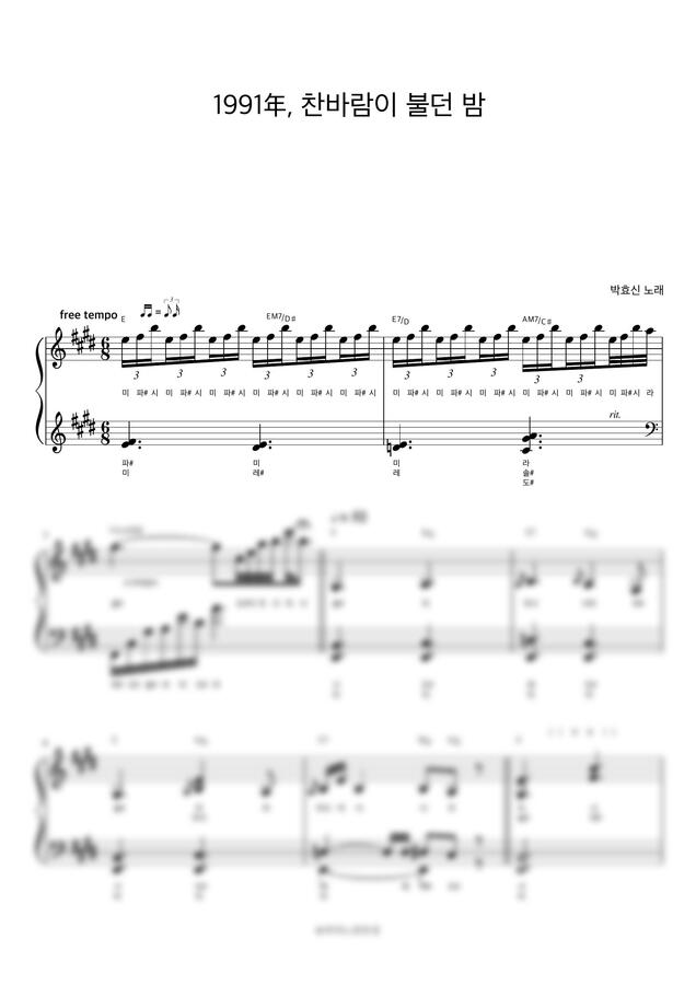 박효신 - 1991년, 찬바람이 불던 밤 (계이름 반주악보) by 피아노정류장 2p 미리보기