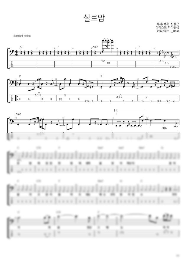 피아워십의 "실로암" 베이스기타 악보 만들어 본것입니다.