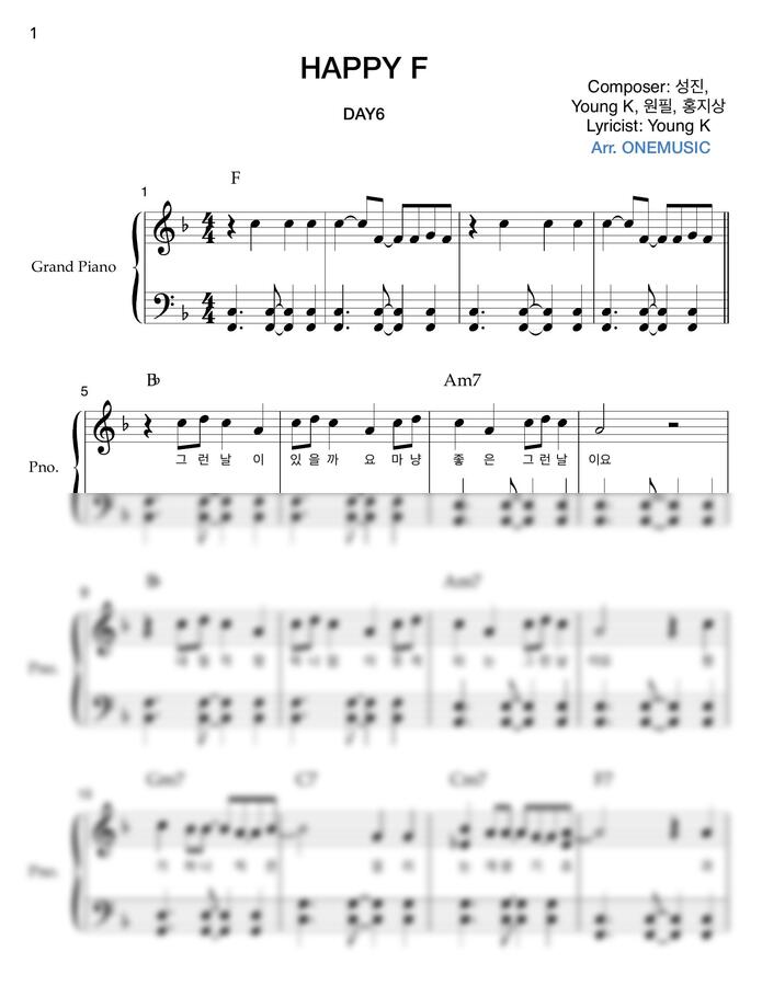 DAY6 데이식스 - HAPPY (원곡버전, F key) 총2개 악보 by ONEMUSIC