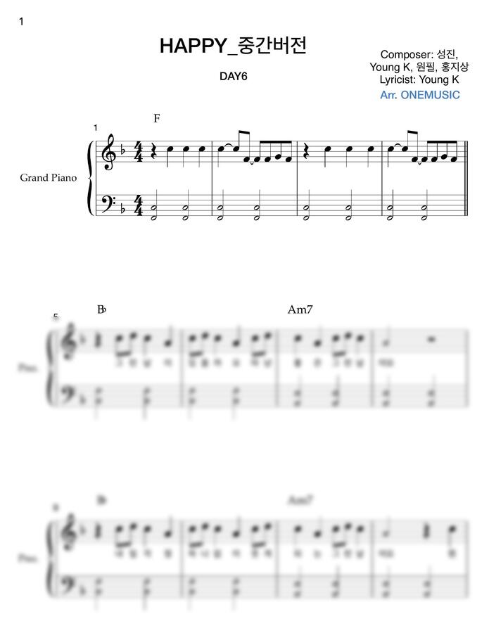 중간버전과 쉬운버전 악보를 준비했습니다.