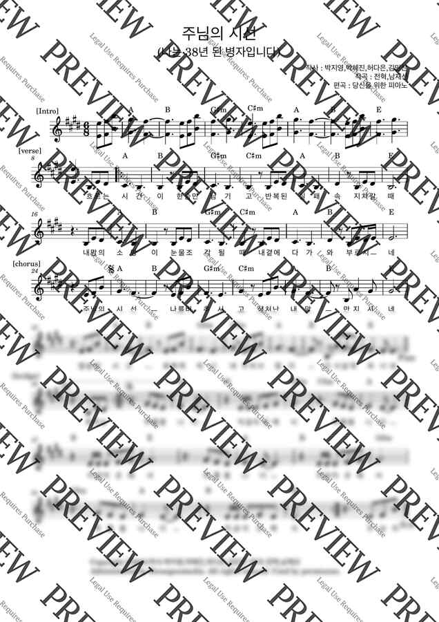 예람워십 - 주님의 시선 (나는 38년 된 병자입니다) (Ekey 가사,코드) by 당신을위한피아노