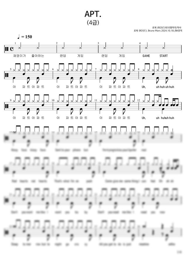 로제(ROSÉ), Bruno Mars - APT ♩=150(4급)