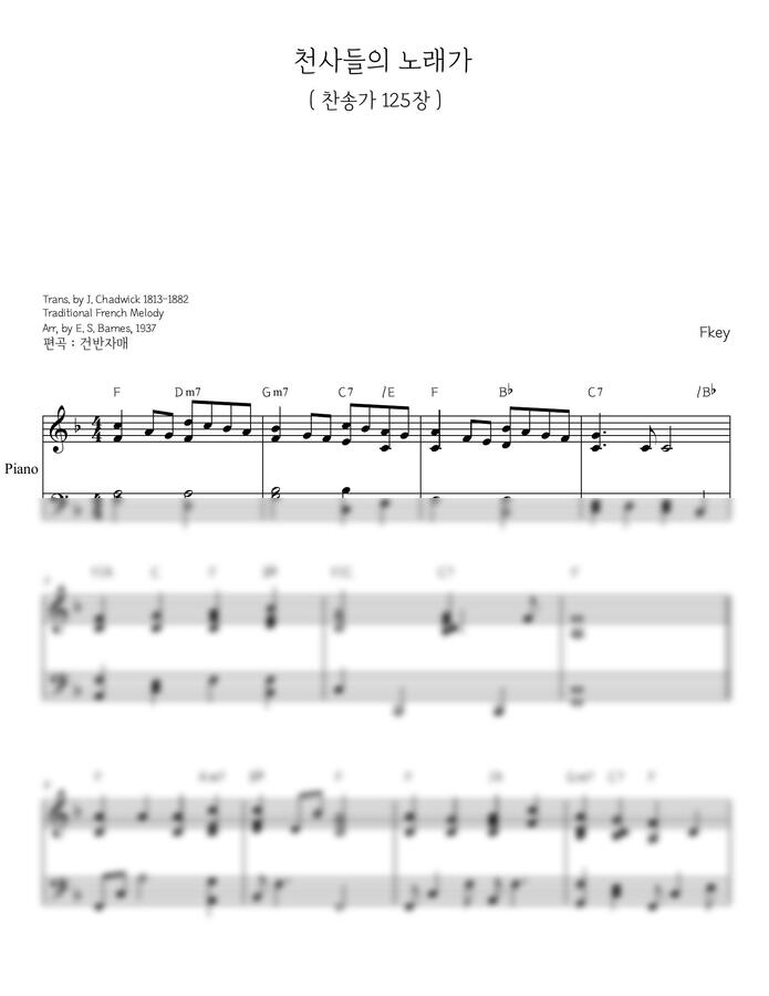 찬송가 키는 그대로. 전주, 후주, 아멘이 적용된 악보입니다.