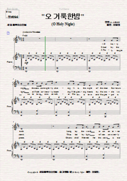 크리스마스 성가곡 "오 거룩한 밤(O Holy Night)" 보컬+반주, 영어가사 악보 입니다