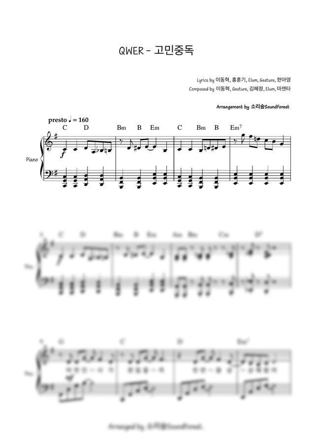 이번에 소개해드릴 악보는 [QWER-고민중독] 입니다.