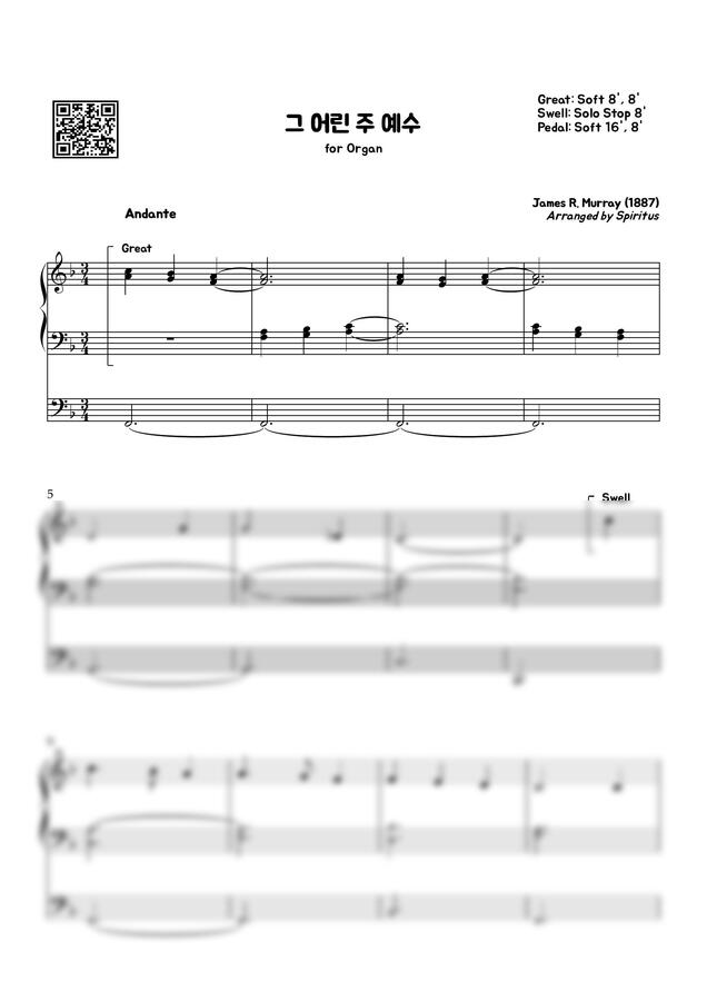 성탄절 찬송 <그 어린 주 예수>의 오르간 전주곡 편곡입니다.