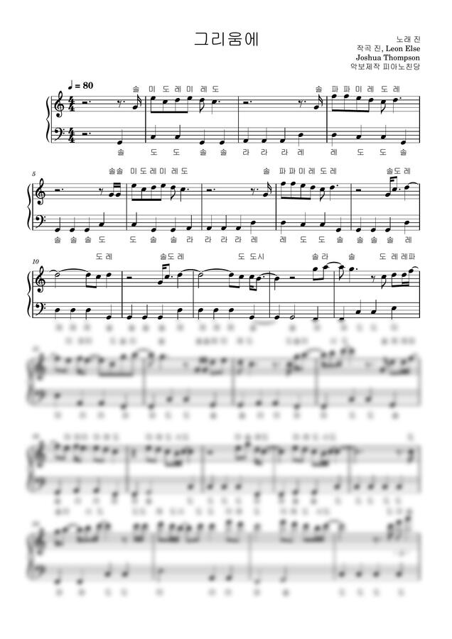 진 - 그리움에 (계이름 악보) by 피아노친당 2p 미리보기
