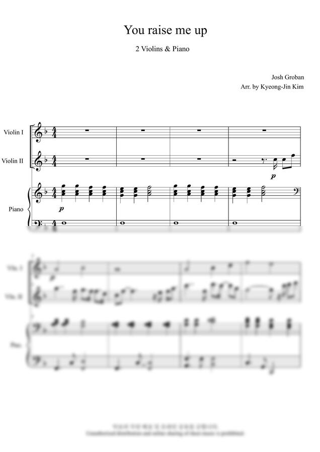 바이올린 두 대와 피아노를 위한 편곡입니다.
