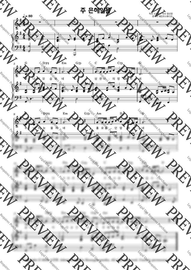마커스워십 (작사 정선경 / 작곡 소진영) - 주 은혜임을 (쉬운악보 G key) by 헤인즈스튜디오