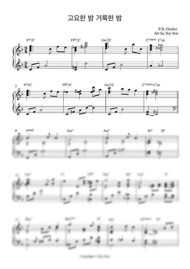 캐롤 고요한 밤 거룩한 밤 Jazz reharm 양손+코드악보 입니다.