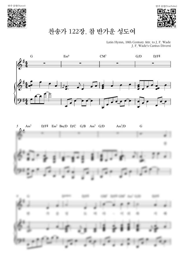찬송가 122장. - 참 반가운 성도여_G Key (피아노 3단) by Samuel Park 1p 미리보기