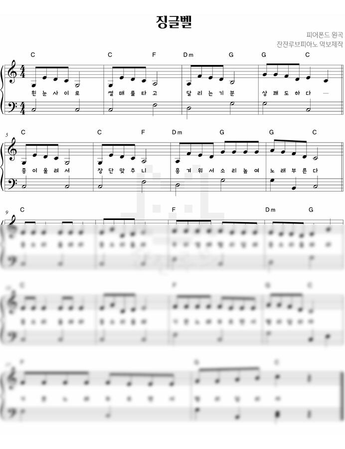 피어폰드 - 징글벨(c)[very easy] (계이름,코드,가사) by 잔잔루브 1p 미리보기