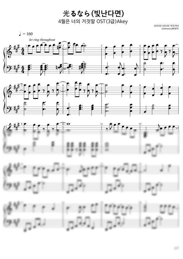 4월은 너의 거짓말OST - 光るなら(빛난다면)♩=160(3급)Akey