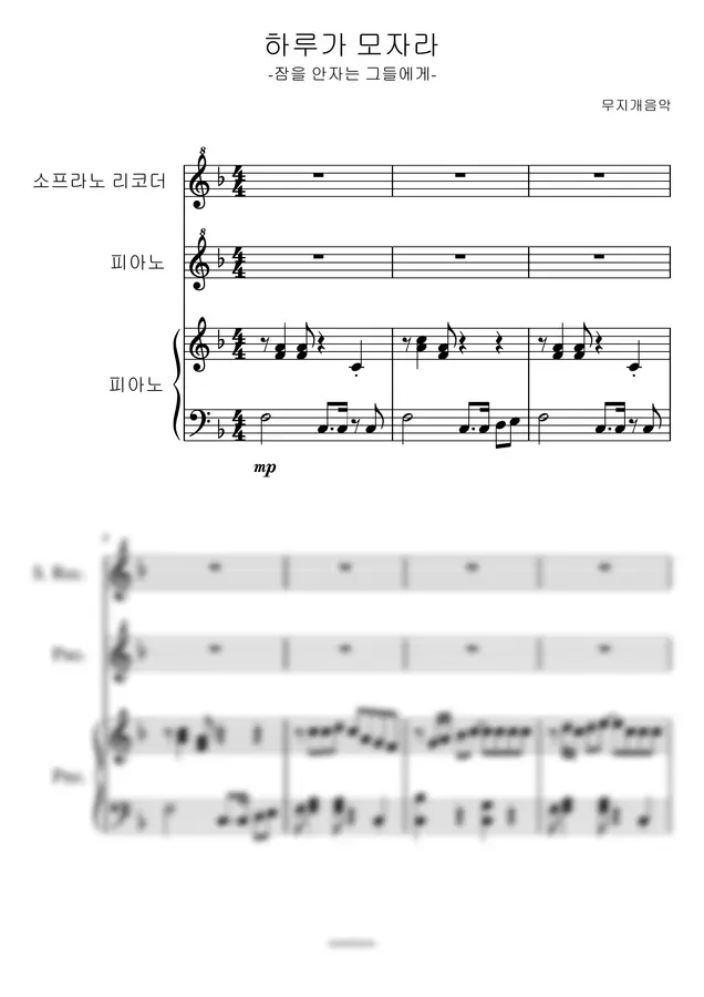 하루가 모자라(보컬, 피아노 듀엣, 리코더) by 무지개음악