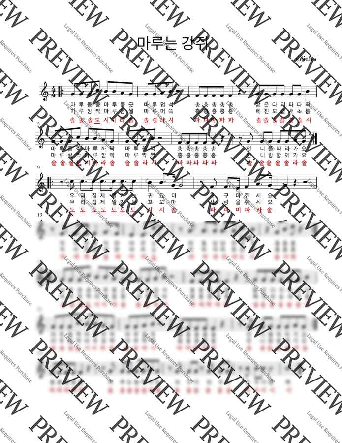 마루는 강쥐 OST 리코더 악보입니다.