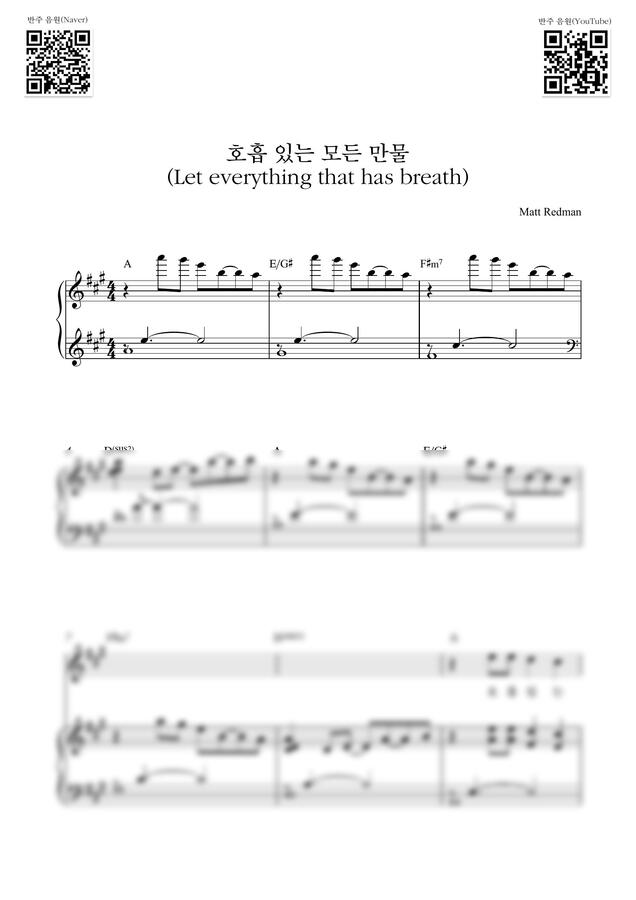 Matt Redman - 호흡 있는 모든 만물_A key (파아노 3단) by Samuel Park0