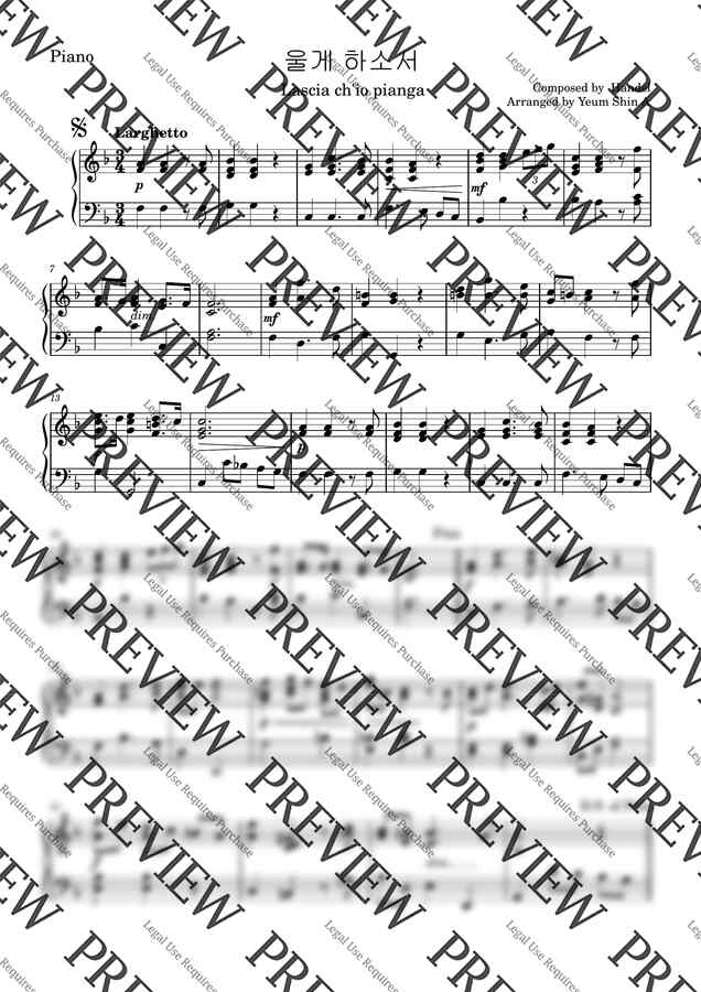 너무나도 유명한 헨델 작곡의 오페라 리날도 중에서 소프라노 아리아 입니다. 영화 파리넬리의 삽입곡으로도 잘 알려져 있는 성악곡 입니다. 이번에는 피아노 솔로로 편곡해 보았습니다. 누구나 도전해 볼 수 있는 곡이며 특히 초보자에게 도움이 될 것입니다.
