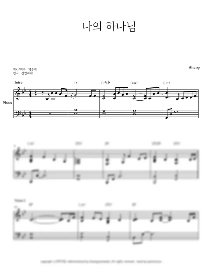 박우정 - 나의 하나님 My Lord, My God (A,Bb,Ckey) (피아노 반주) by 건반자매