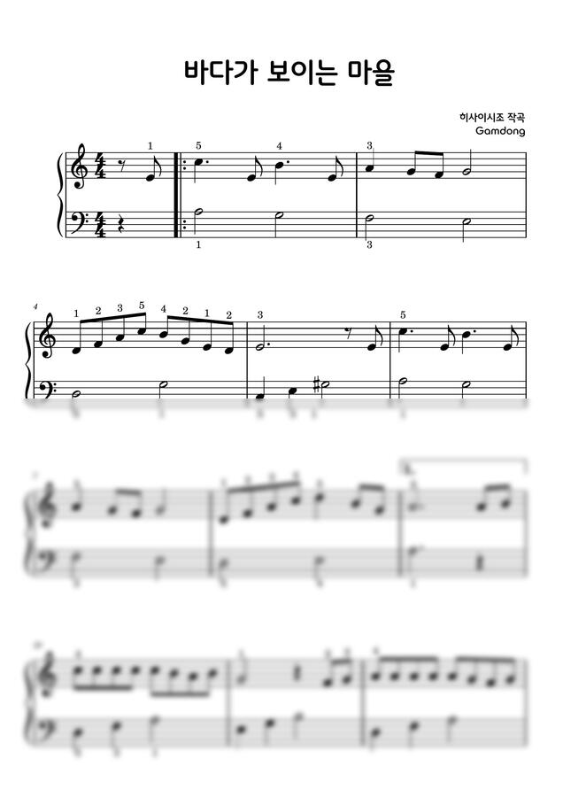 히사이시조 - 마녀 배달부 키키 OST - 海の見える街 (바다가 보이는 마을) 바이엘쉬운악보(세가지키)by Gamdong by Gamdong