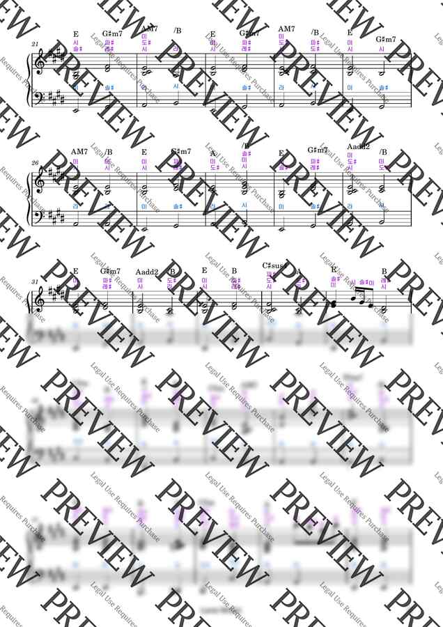원곡의 감성을 최대한 그대로 담은 쉬운 악보. (샾(#), 플랫(b) 없거나 매우 적어요.)