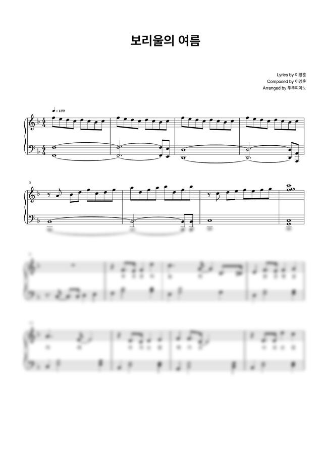 동요 보리울의 여름 (가사 첨부 / 쉬운 악보) by 뚜뚜피아노