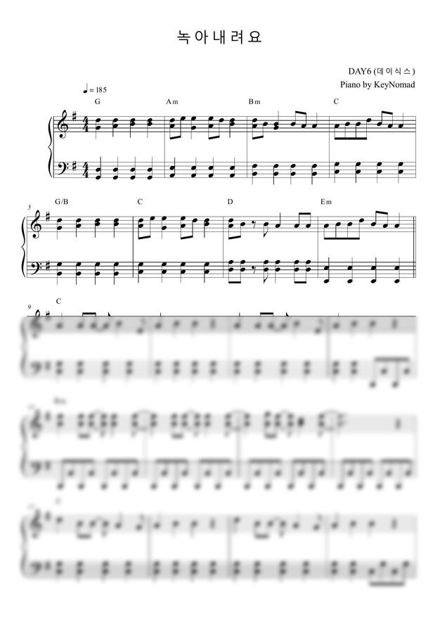 이 악보는 G Major입니다. (원곡 Ab)