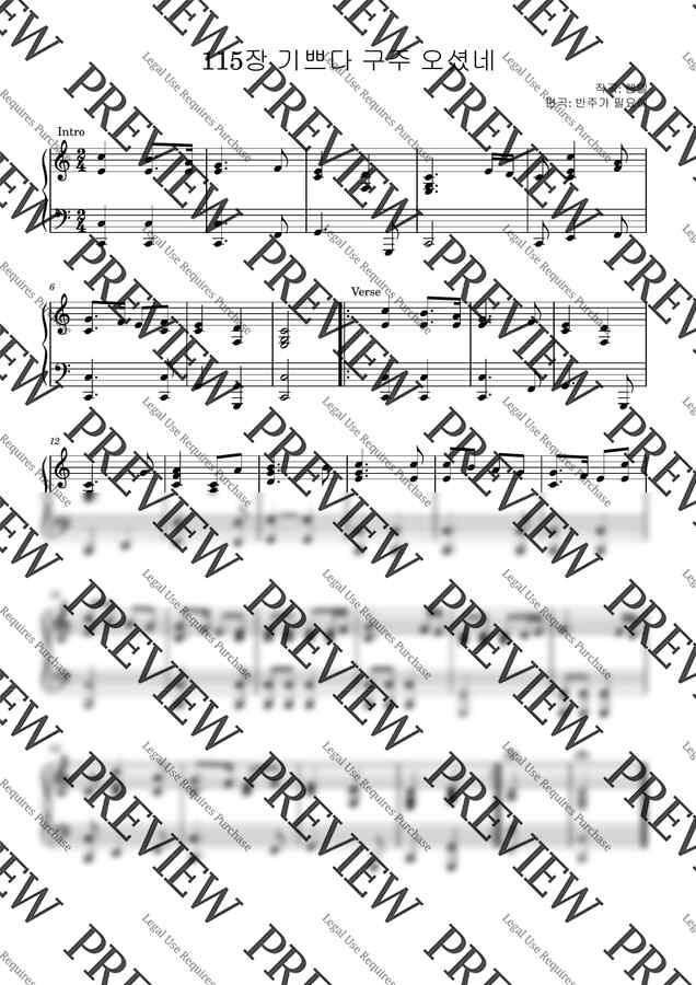 악보: 1페이지로 1절 + 마무리로 구성되어 있습니다.
