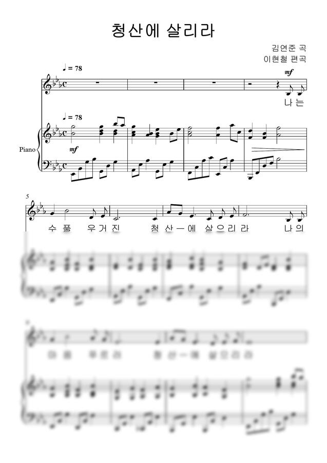 김연준 곡 이현철 편곡 - 청산에 살리라(편곡) Eb by 단쨉