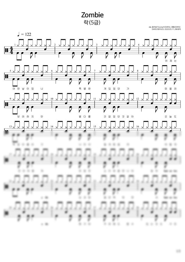 DAY6 (데이식스) - Zombie ♩=122(5급)