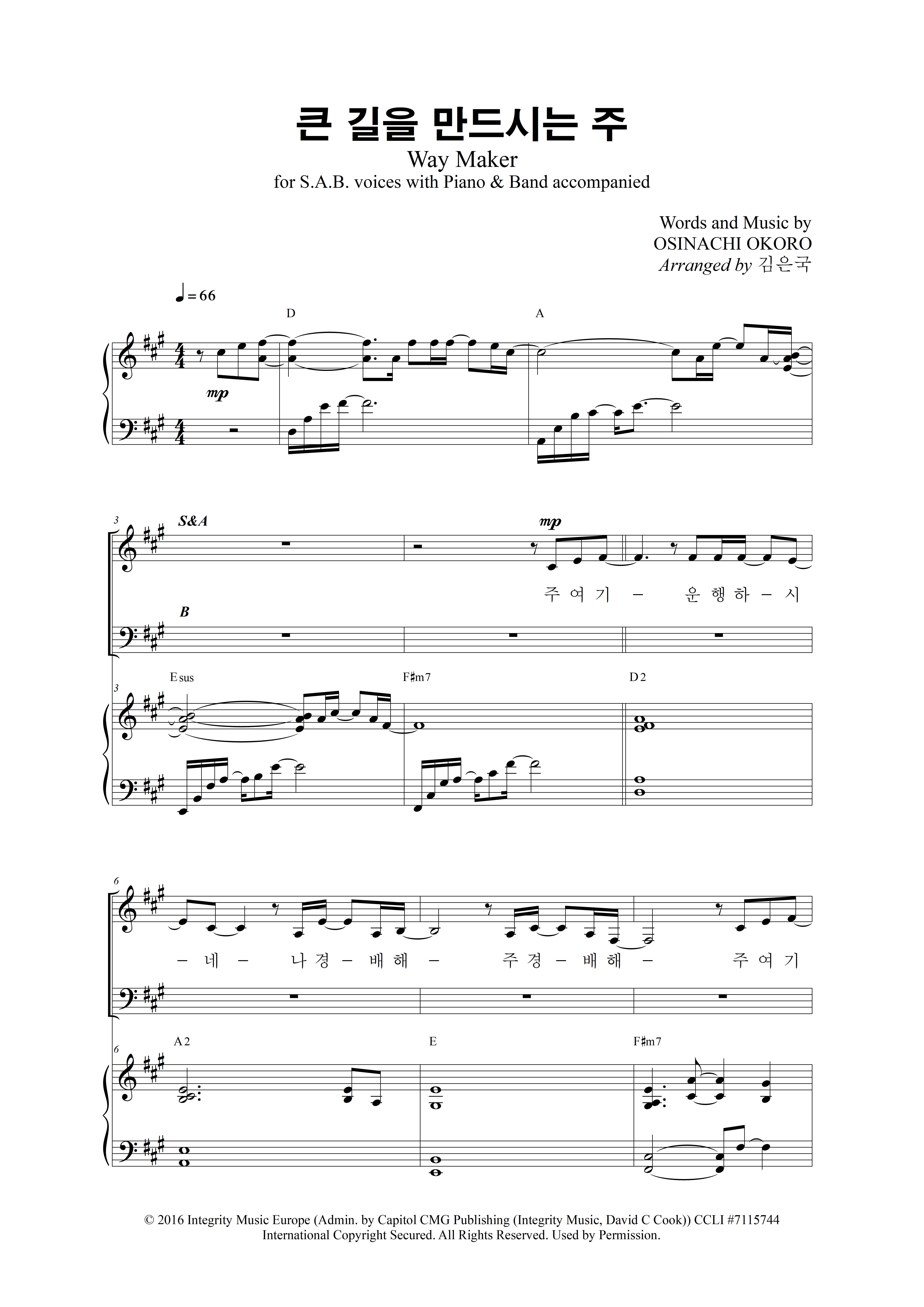 큰 길을 만드시는 주 Way Maker SAB 3부 편곡 성가 합창입니다.