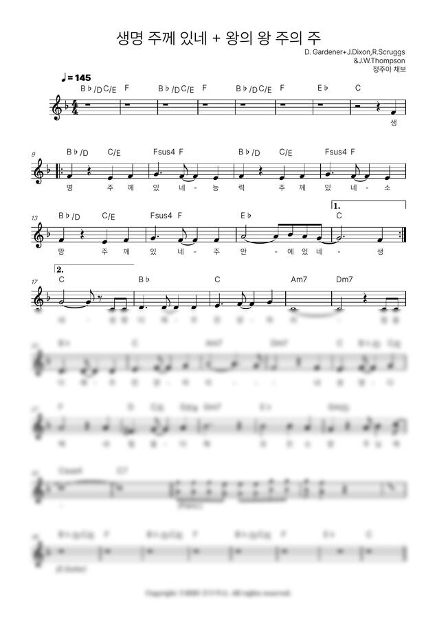 D. Gardener - 생명 주께 있네 + 왕의 왕 주의 주 피아워십ver. (F Key) by 정주아 채보